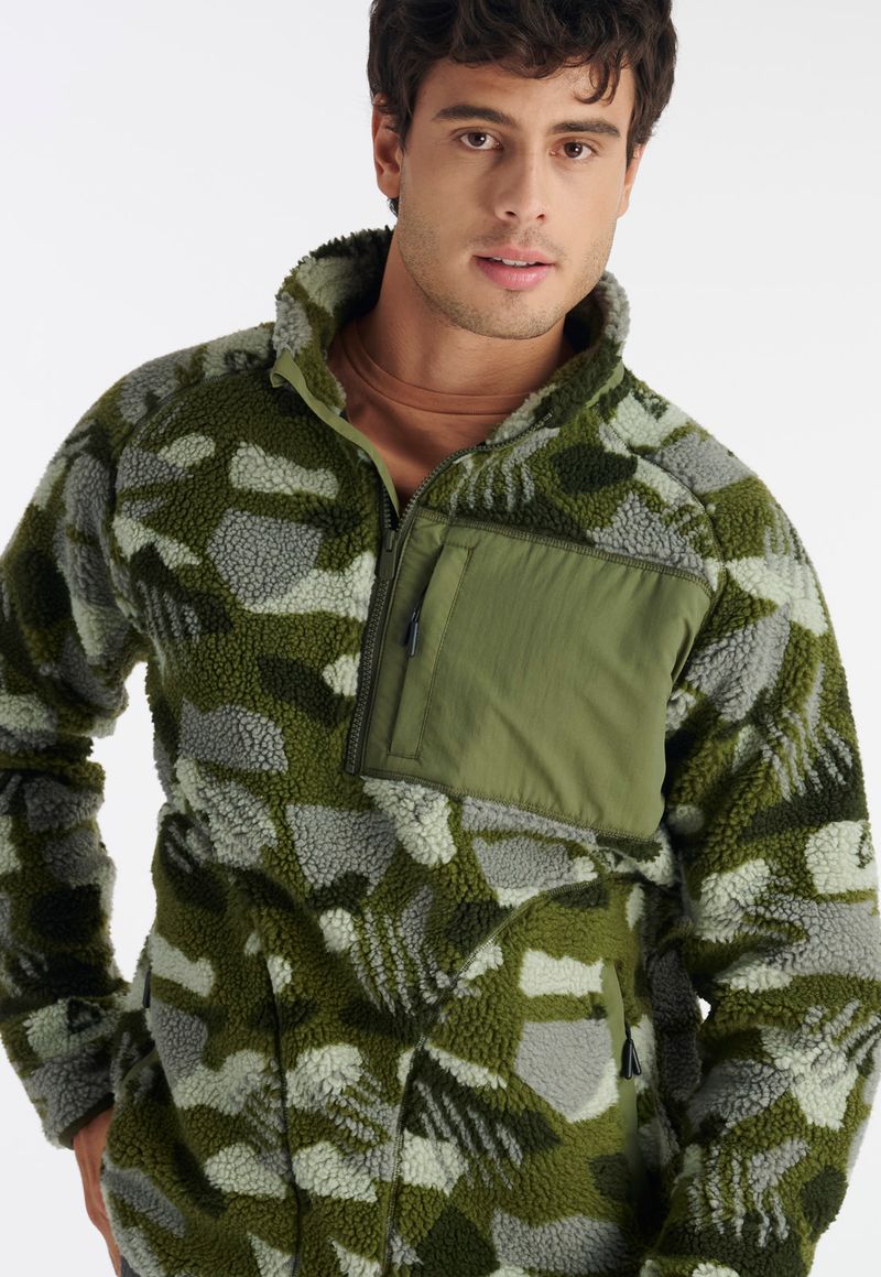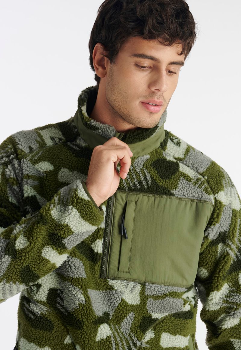 Este chiporro half zipper habla por sí solo. Modelo muy térmico confeccionado en poliéster reciclado hecho con materiales reciclados como parte de nuestro compromiso con la sustentabilidad. Diseño full print con bolsillo de parche con cierre en pecho, bolsillos principales con aplicación de taslan, prestina y puño elasticados, y etiqueta tejida con marca. De calce regular, está disponible en dos colores.